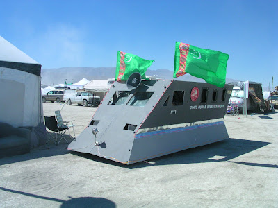 I should note, as a long time student of Ayn Rand's ideas, my politics are the very opposite of our camp presentation. Indeed, I am currently reading Churchill's writing of World War II, but find Tim's retro avant guard socialism to be both a Zen challenge and even entertaining in an inverse mocking sort of way. It's another excellent example of getting past one's politics on the playa.